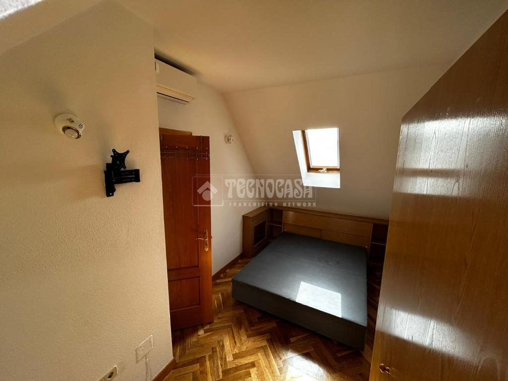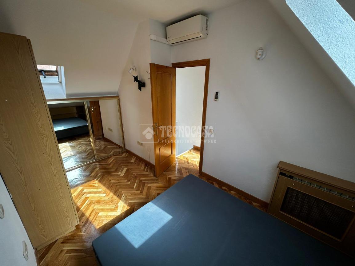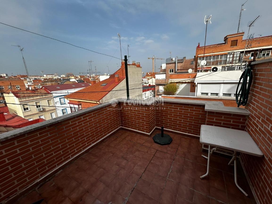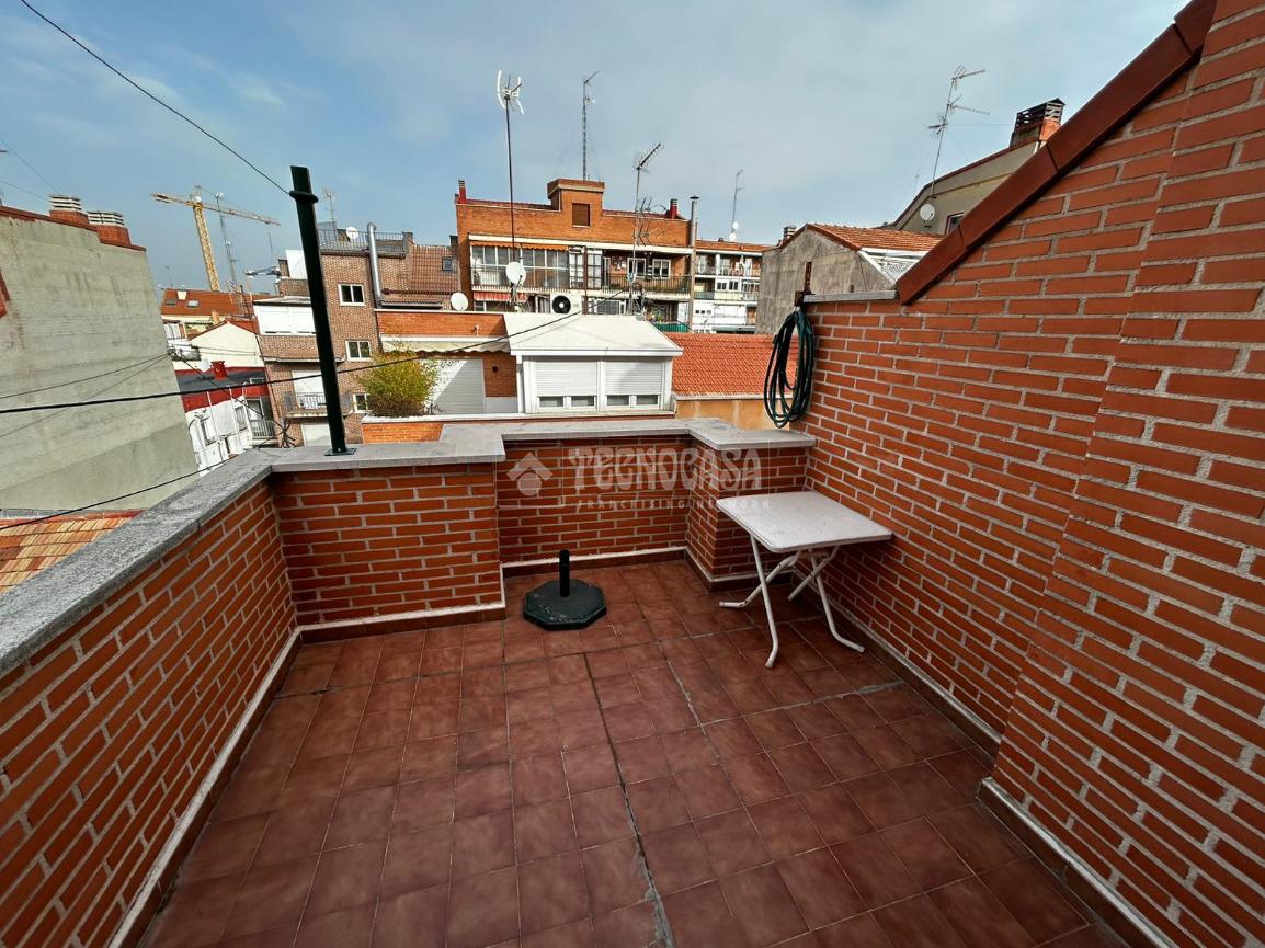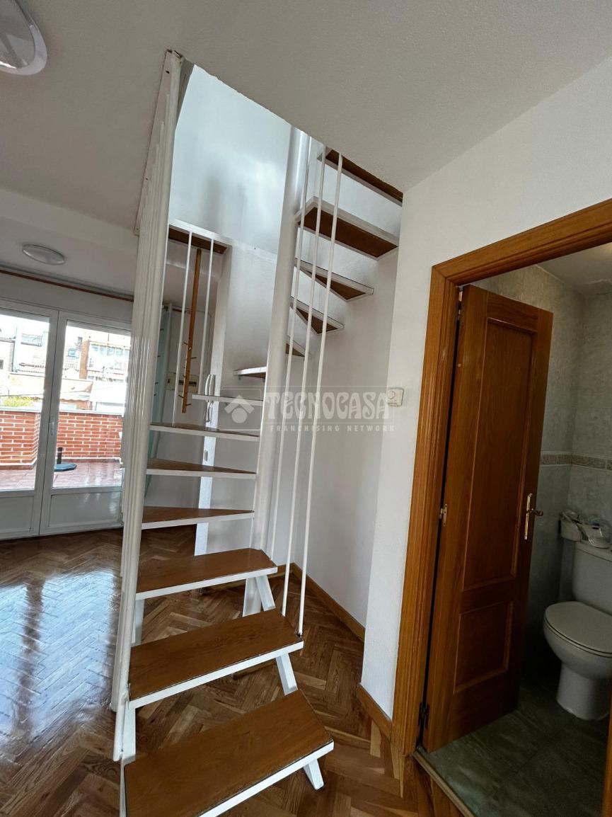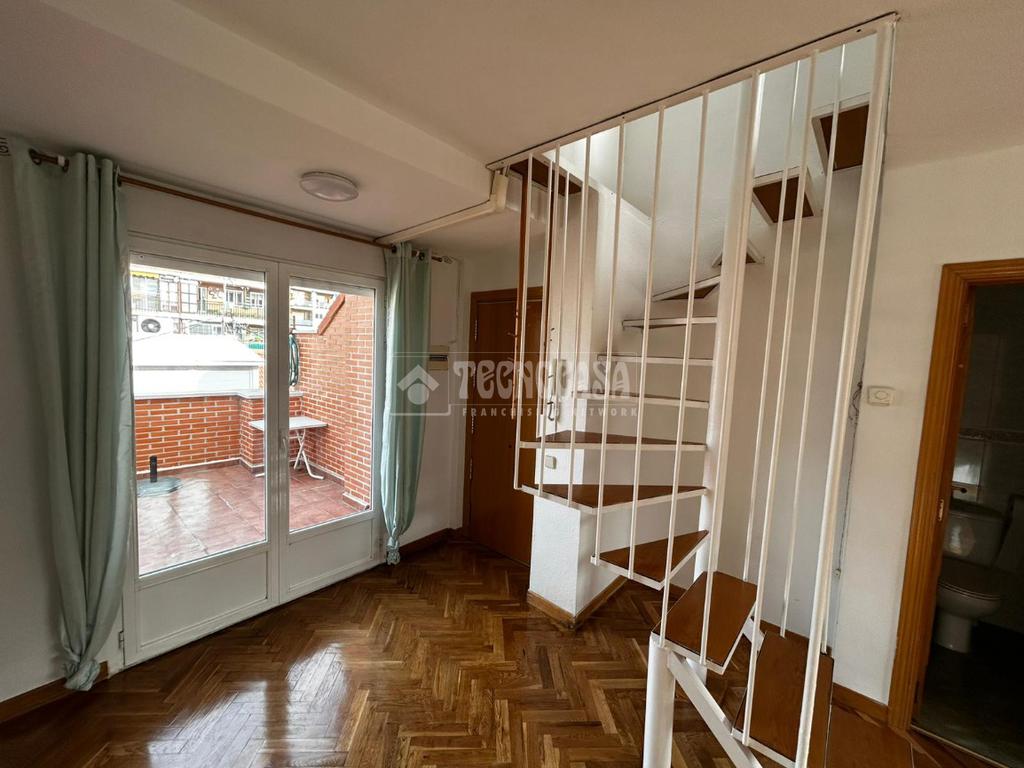 TECNOCASA OFICINA ESTRECHO 2021 OFRECE EN ALQUILER: Vivienda situada en calle Maria Luisa, finca con ascensor. Ático dúplex exterior con terraza de 10m², se compone de salón amplio, cocina y aseo en planta baja, dormitorio y un baño con jacuzzi, en planta superior. Todas las estancias cuentan con grandes ventanales, muy luminoso. Cuenta con calefacción de G/N individual y trastero incluido. Parada Metro Estrecho - Tetuán (Línea 1) a menos de 8 minutos. Y Santiago Bernabéu (Línea 10) a menos de 15 minutos.